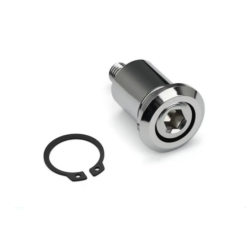 Šesťhranné zámky na dvierka skrinky sú vyrobené z uhlíkovej ocele s povrchovou úpravou v modrej, lesklej chrómovej a čiernej farbe. Všetky povrchové úpravy majú rovnakú kvalitu, líšia sa len povrchovou úpravou: modrá a čierna sú práškovo lakované, zatiaľ čo svetlý chróm je galvanicky pokovovaný. Hoci je uhlíková oceľ pevná, chýba jej odolnosť proti korózii, vďaka čomu je vhodná pre všeobecné prostredie. Možnosti z nehrdzavejúcej ocele nájdete na stránke s podrobnosťami o produkte. Modely z nehrdzavejúcej ocele majú dvojitý cylindrický zámok.