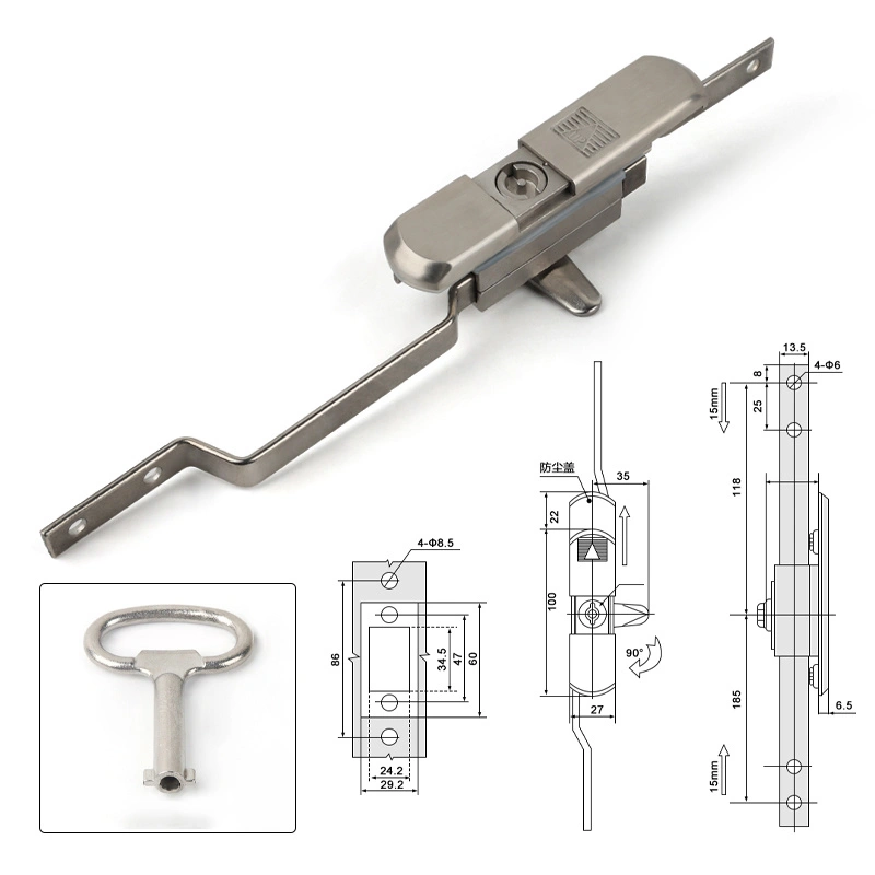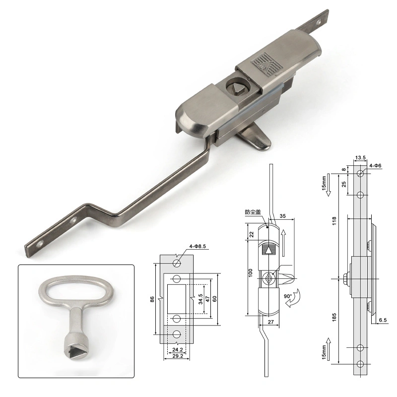 Funkciou tohto zámku je zabezpečiť dvere skrinky prostredníctvom mechanizmu vertikálneho tyče, ktorá poskytuje komplexnú ochranu elektrických skriniek alebo stojanov na servery. Dizajn produktu je kompatibilný s rittal skrinkami a štandardnými telesami skrinky a inštalácia neovplyvňuje štruktúru dverí. Telo zámku je vybavené krytom prachu na zjednodušenie údržby.