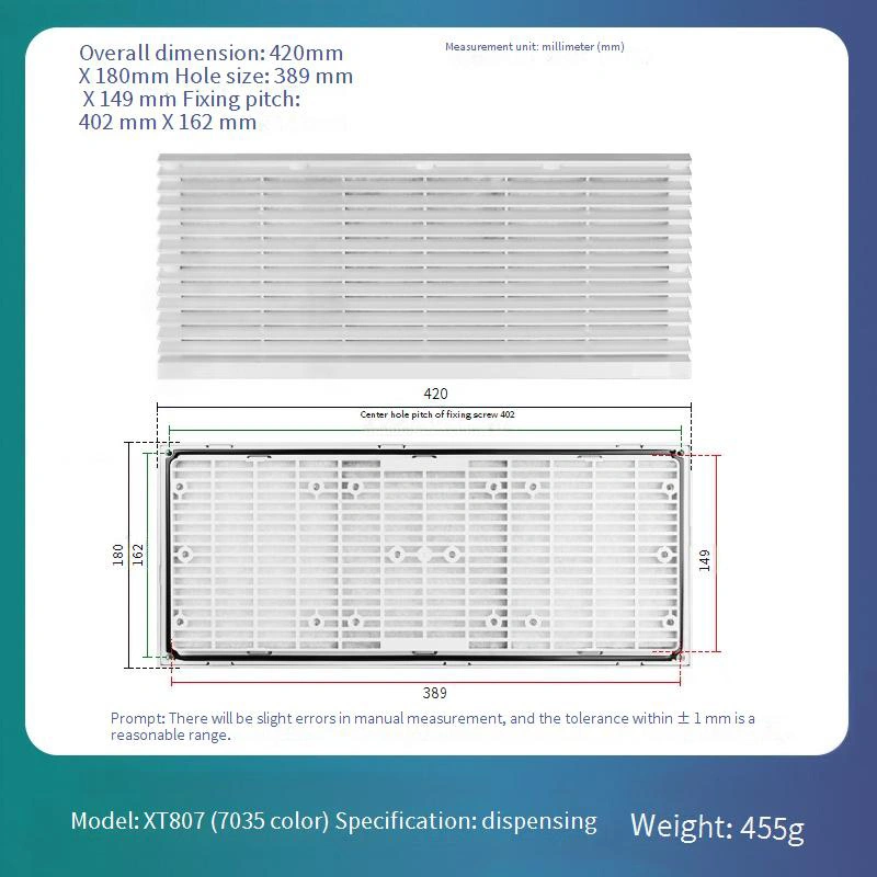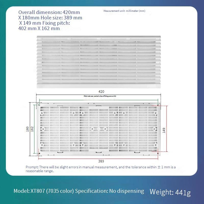 Má vymeniteľný dizajn siete pre ľahkú dennú údržbu a výmenu, čím sa výrazne znižuje dlhodobé prevádzkové náklady. Štruktúra rámu je k dispozícii vo štandardnej bielej farbe 7035. Je skonštruovaný z materiálu ABS, ktorý ponúka vynikajúci odpor deformácie, čím zabezpečuje dlhodobú stabilitu.